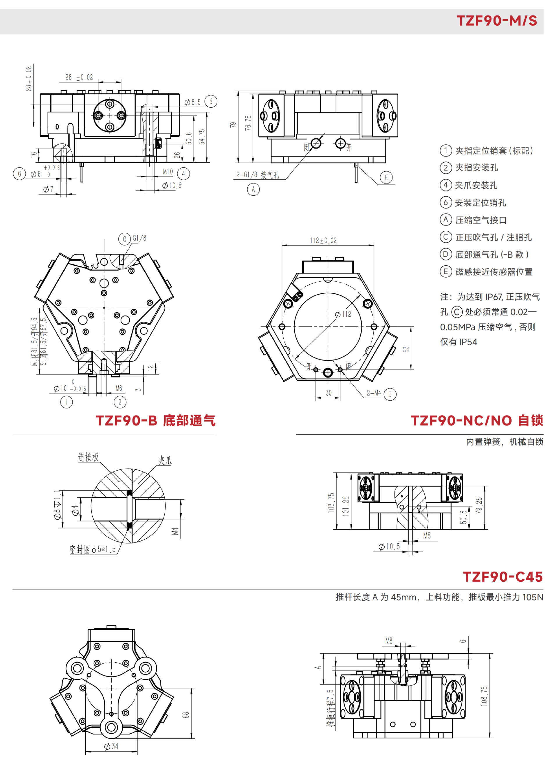 C45/C60:推杆长度45mm/60mm